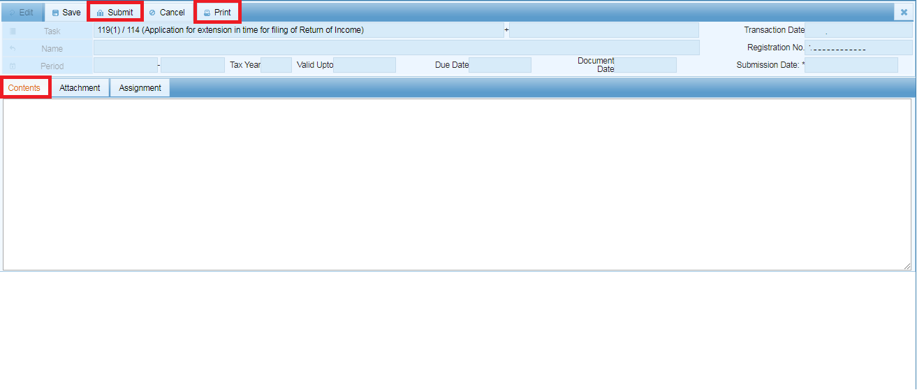 - Click on “Submit” Button on the Horizontal Bar Menu at the top of the Screen.