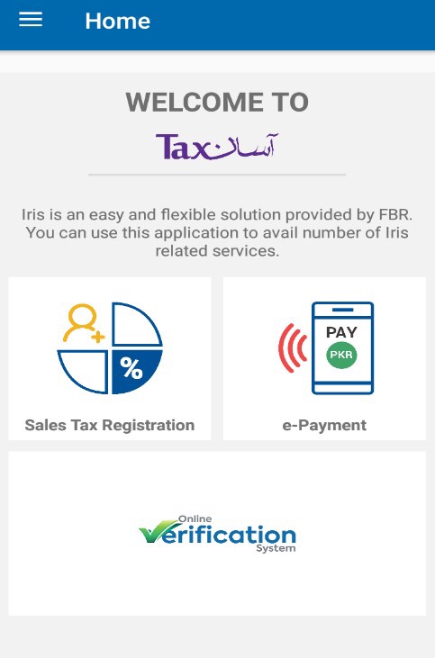 Tax Asaan is a mobile application with selected functionality of Iris web application. This mobile application provides the taxpayers a quick and on-the-go access of basic verification features like Active Taxpayers List (ATL), Online NTN/STRN Inquiry, Exemption Certificate and CPR Utilization Status etc.