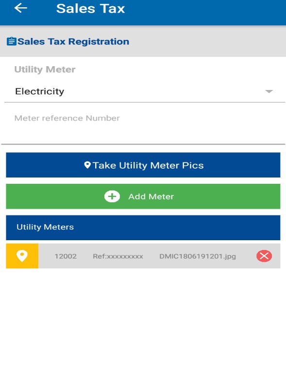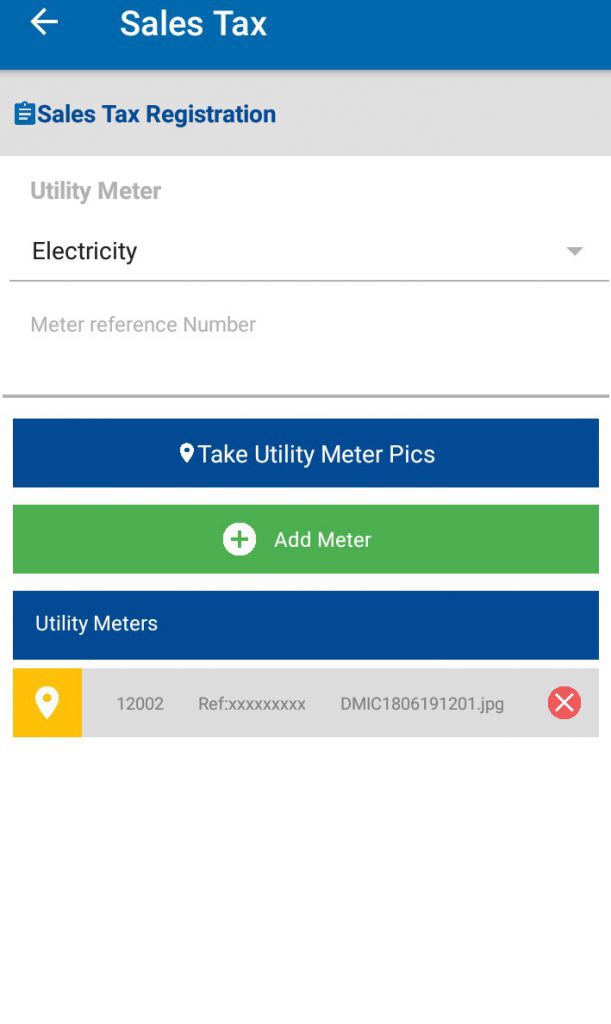 - Enter Utility Meter Reference Number in provided field and click Add Meterbutton to add record of utility meter.