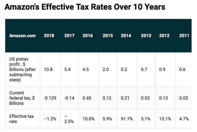 Thanks to the new Tax Cuts and Jobs Act (TCJA), Amazon’s federal tax responsibility is 21% (down from 35% in previous years). But with the help of tax breaks, according to corporate filings, Amazon won’t be paying a dime to Uncle Sam despite posting more than $11.2 billion in profits in 2018.