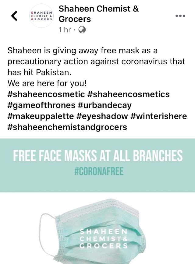 Shaheen is giving away free mask as a precautionary action against coronavirus that has hit Pakistan.