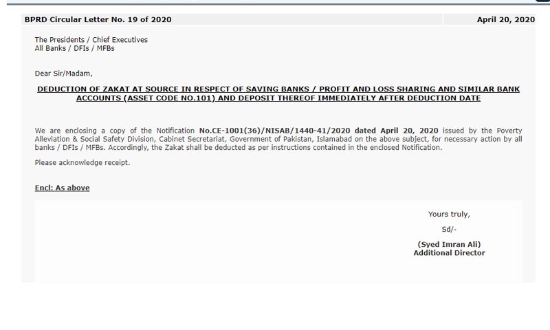 SBP also issued a circular to all banks to implement the Nisab for Zakat deduction from 1st of Ramzan.